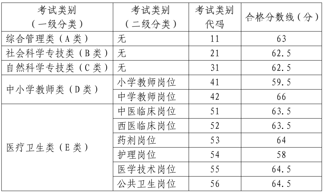 一、《職業(yè)能力傾向測驗》單科成績不低于下表中合格分數(shù)線。