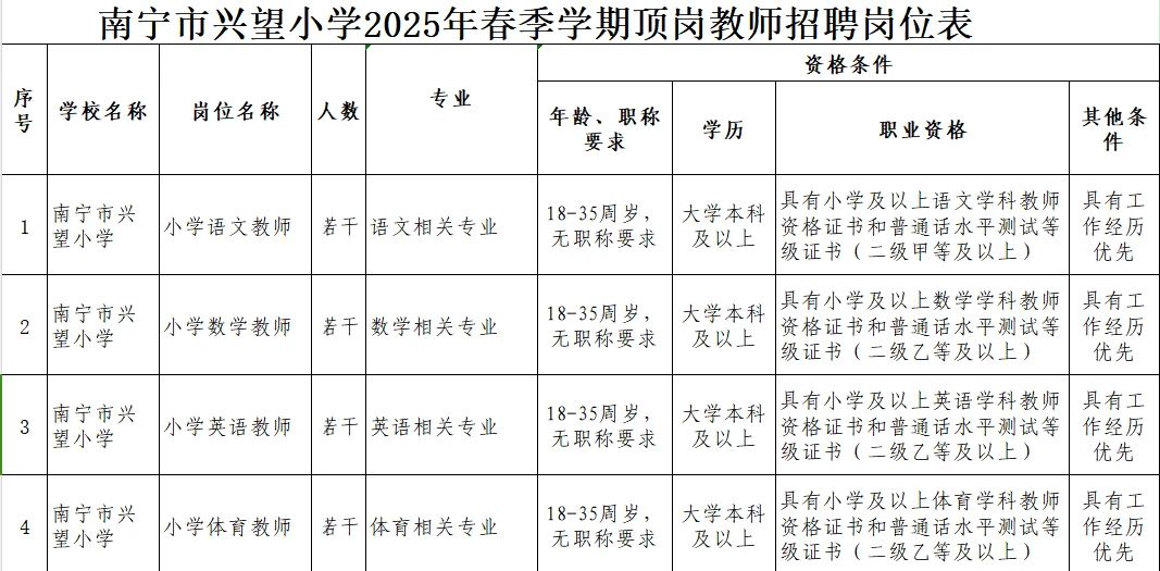 原文標(biāo)題:【教師招聘】真雅興望 歡迎你的到來 ——南寧市興望小學(xué)2025年春季學(xué)期頂崗教師招聘公告