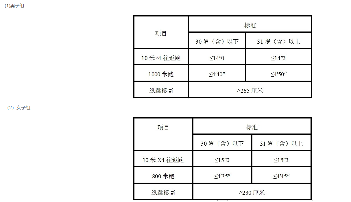 研究生及以上學(xué)歷報考人員參加體能測評三項(xiàng)內(nèi)容中有兩項(xiàng)達(dá)標(biāo)的,視為合格。非研究生及以上學(xué)歷報考人員體能測評三項(xiàng)全部達(dá)標(biāo)方為合格。