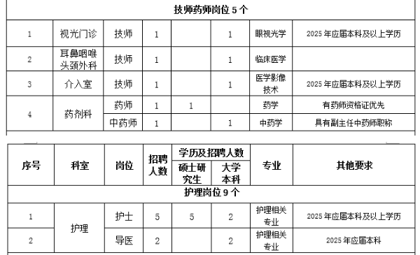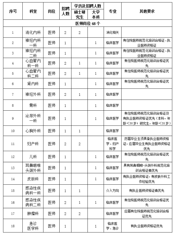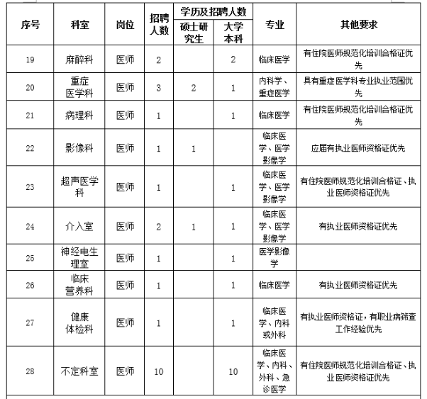 1.思想政治素質(zhì)好,擁護黨的路線、方針、政策。2.遵紀守法,醫(yī)德品行良好,有較強的事業(yè)心、責任心和進取心。3.身體健康,能滿足應(yīng)聘崗位需要。4.具備相應(yīng)的學(xué)歷和學(xué)位,有履行應(yīng)聘崗位職責的專業(yè)能力、技能條件。5.具有團隊精神,有良好的溝通能力。6.具備應(yīng)聘崗位所需要的其他條件。7.服從單位安排。