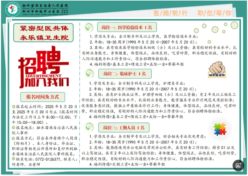 2025年廣西柳州緊密型醫(yī)共體永樂(lè)鎮(zhèn)衛(wèi)生院招聘3人
