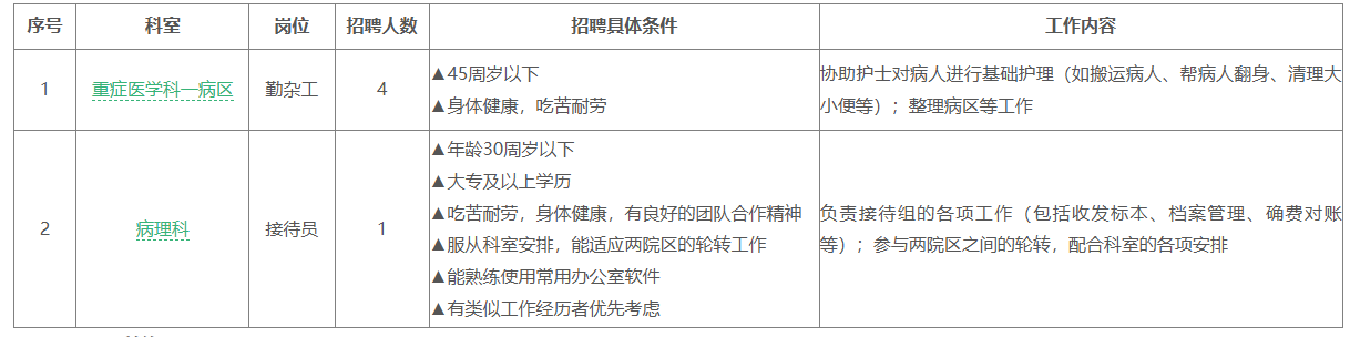 因醫(yī)院工作需要,現(xiàn)面向社會(huì)公開(kāi)招聘5名普通合同工?,F(xiàn)就有關(guān)事項(xiàng)公告如下: