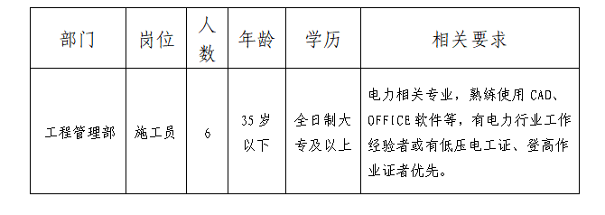 要求服務意識強,辦事穩(wěn)重,作風扎實,服從工作安排、身體健康,具備崗位專業(yè)要求。具體招聘崗位及招聘條件如下表:
