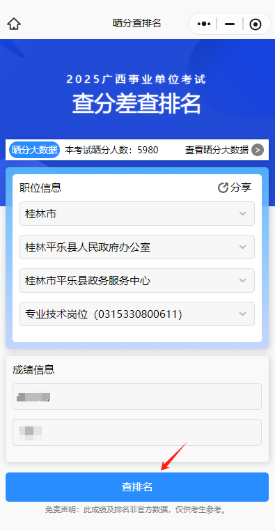 根據(jù)提示選擇自己的崗位,如實(shí)輸入分?jǐn)?shù),不僅可以看見(jiàn)同崗位分差情況,還可以看見(jiàn)自己分?jǐn)?shù)在本系統(tǒng)排名,曬分榜情況等: