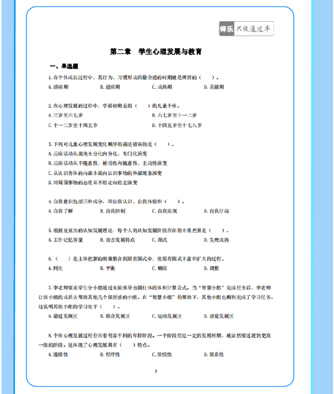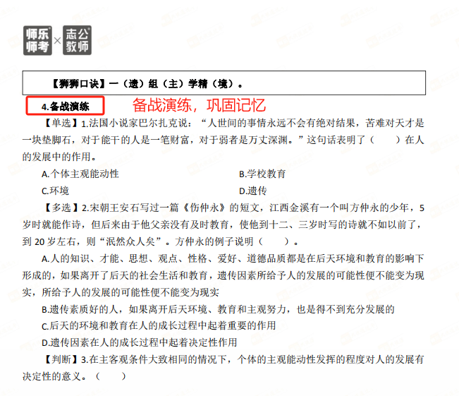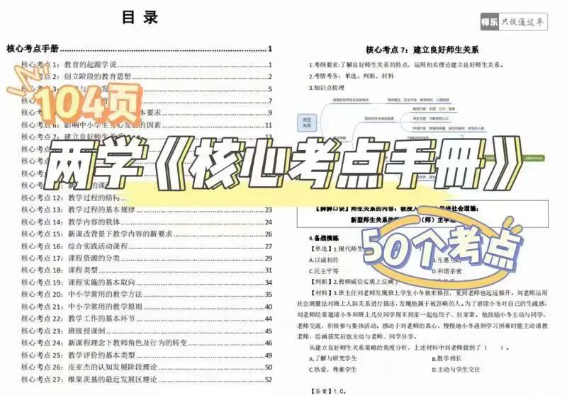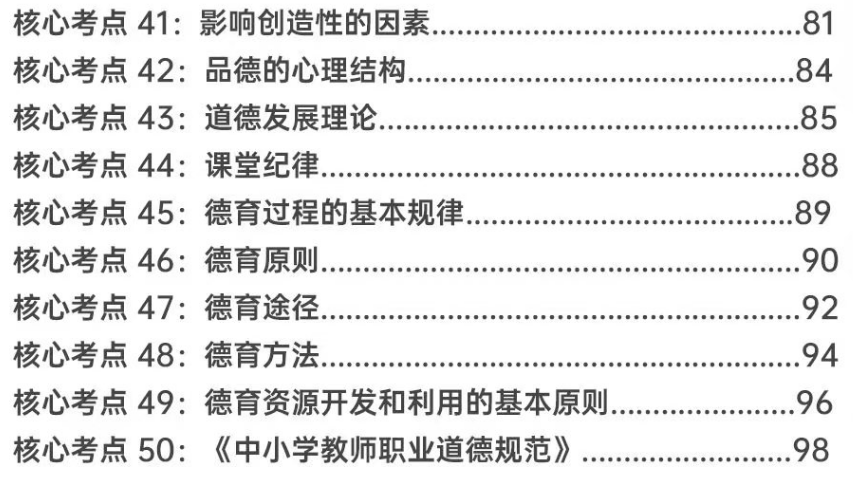 匹配考綱要求,精選50個(gè)核心考點(diǎn):銘師組團(tuán)精研,基于考綱收錄《教育學(xué)與教學(xué)法基礎(chǔ)知識(shí)》《教育心理學(xué)與德育工作基礎(chǔ)知識(shí)》核心考點(diǎn),重點(diǎn)突出,幫助考生學(xué)習(xí)記憶。
