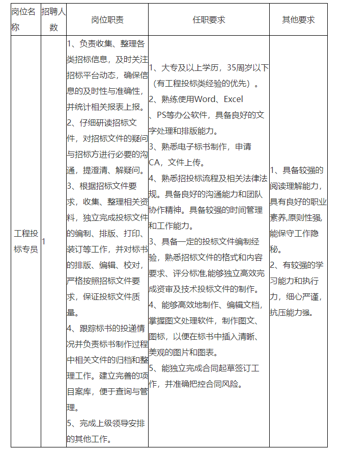 因公司發(fā)展需要,現(xiàn)面向社會誠聘英才,熱忱歡迎有志者加盟。本次招聘崗位1個,擬招1人。工作地點(diǎn)為百色市右江區(qū)。