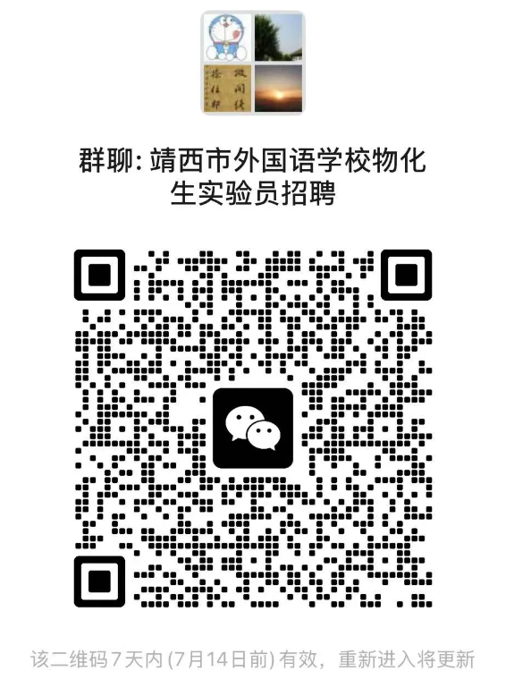 1. 報名:掃碼加入招聘溝通群,進群請備注“應聘實驗員+學科(物理/化學/生物 )+姓名”,群內(nèi)將發(fā)布后續(xù)招聘流程、資料提交等信息。