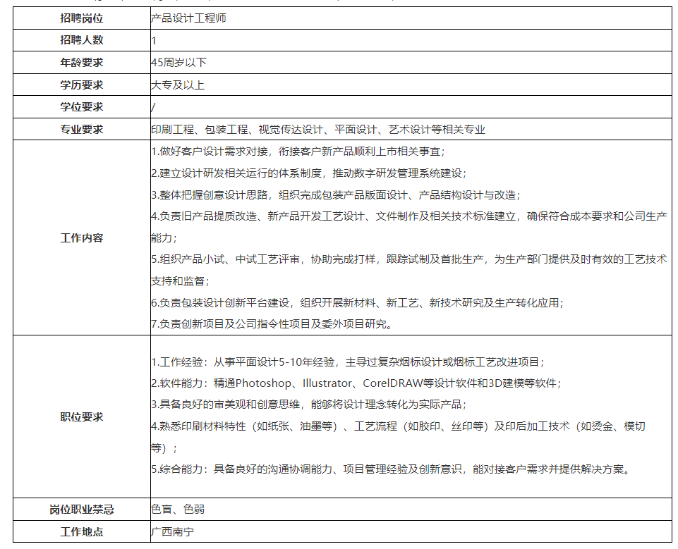 公司以創(chuàng)新引領(lǐng)發(fā)展,公司先后獲得“全國印刷示范企業(yè)”、“中國煙標印刷行業(yè)最具實力十大領(lǐng)軍企業(yè)”、“廣西制造業(yè)企業(yè)50強”,連續(xù)三年獲得“廣西優(yōu)秀企業(yè)”、“賀州市億元納稅企業(yè)”等榮譽稱號。公司秉承以人為本的理念,尊重人才、重視人才,開展員工職業(yè)發(fā)展規(guī)劃,為每一位員工提供廣闊的發(fā)展機會,充分發(fā)揮員工自主性和創(chuàng)造性。根據(jù)公司發(fā)展需要,現(xiàn)面向社會公開招聘員工。具體事項公告如下: