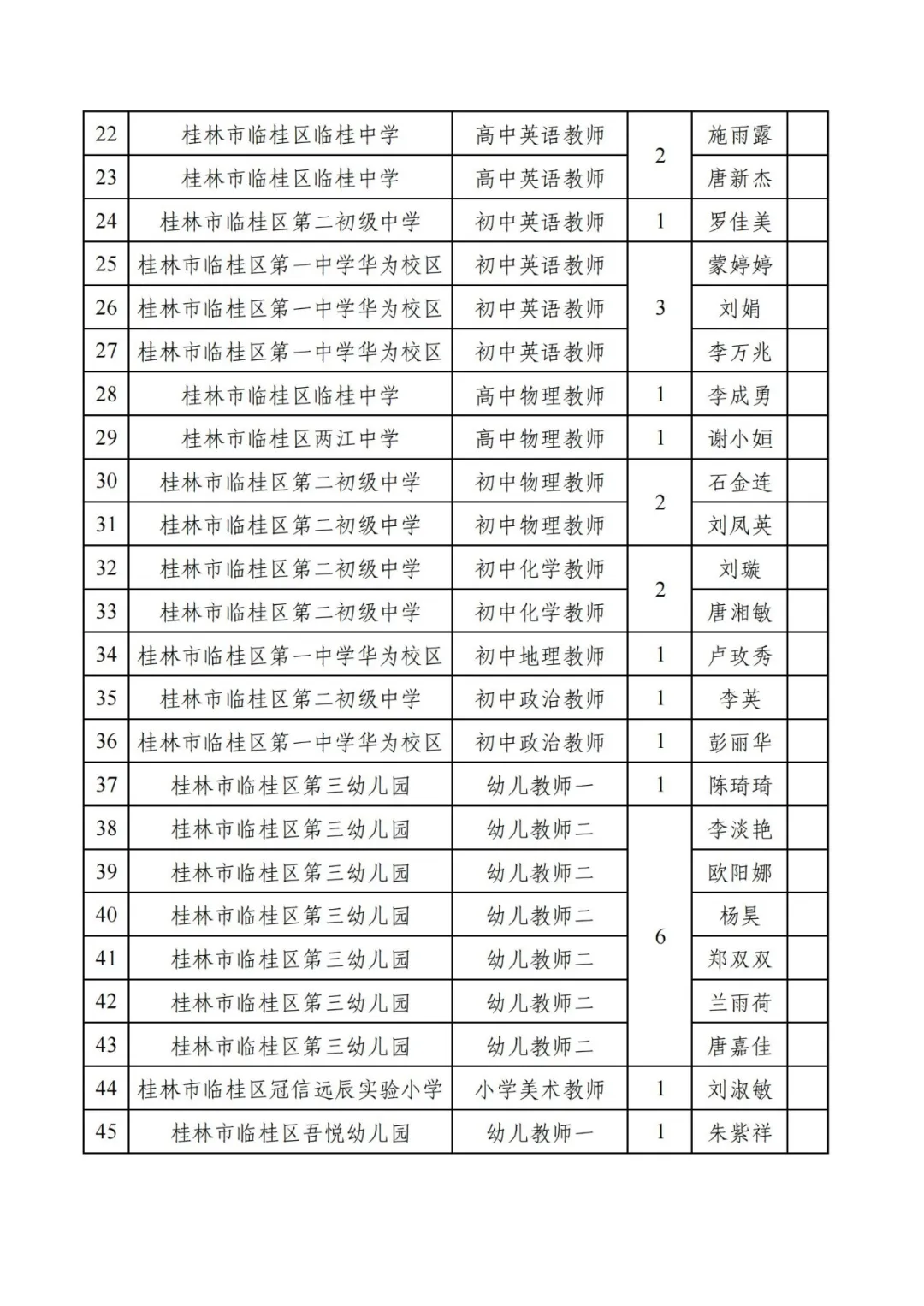 附件:2025年桂林市臨桂區(qū)公開招聘中小學教師進入考核人員名單