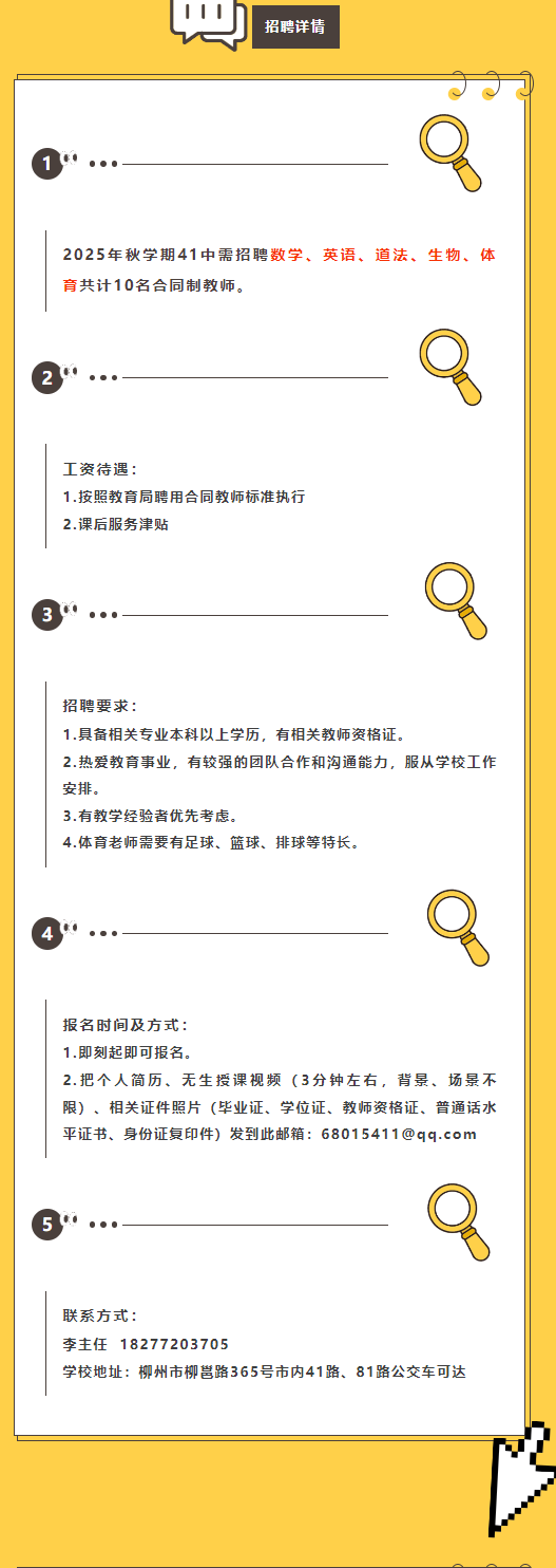 原文標題:柳州市第四十一中學(xué) —— 招聘10名合同制教師