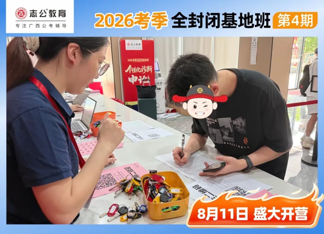 陽光明媚的一天,適合學(xué)習(xí),早上10點(diǎn),志公教育(中關(guān)村)全封閉基地的簽到區(qū)已經(jīng)布置妥當(dāng),志公的班主任們早早到位,迎接每一位學(xué)員的到來。學(xué)員們滿懷期待,早早來到基地,為即將到來的學(xué)習(xí)之旅做好準(zhǔn)備。簽到臺前,大家有序排隊,學(xué)員們依次領(lǐng)取到宿舍鑰匙、水卡等。班主任們細(xì)心核對信息,發(fā)放學(xué)員證和學(xué)習(xí)資料,確保每一位學(xué)員都能順利開啟接下來的學(xué)習(xí)生活。