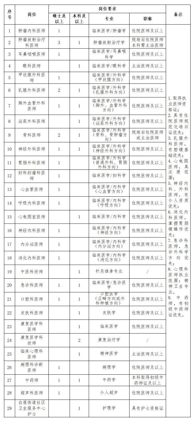1.依據(jù)國家和學校相關規(guī)定享受相應的待遇和工作條件,符合醫(yī)院人才引進政策的享受相應等次(博士、學科帶頭人、業(yè)務骨干、碩士研究生、急需崗位本科畢業(yè)生)的待遇,含安家費、科研啟動費、租房補貼等,具體情況以人事科解釋為準。