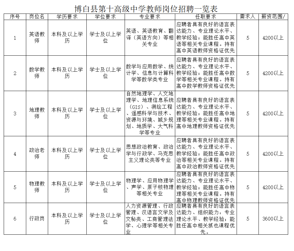 原文標(biāo)題:急聘!急聘英才 共創(chuàng)未來|博白縣第十高級(jí)中學(xué)2025年教師招聘啟事