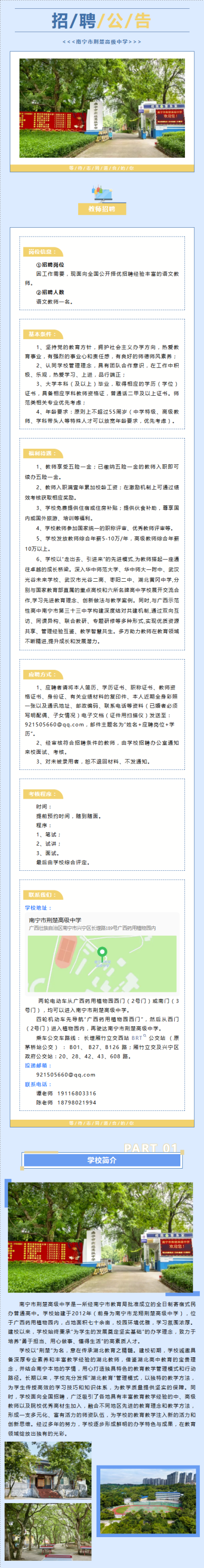 原文標(biāo)題:南寧市荊楚高級(jí)中學(xué)招聘語(yǔ)文教師