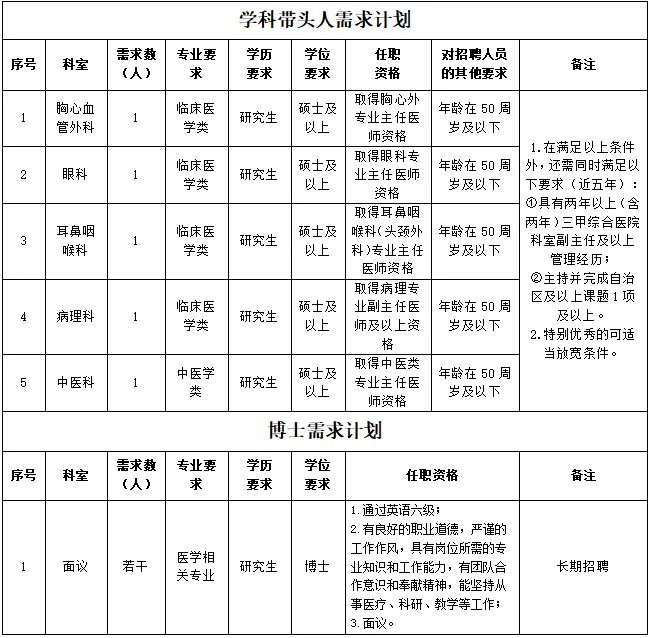 為進一步完善現(xiàn)有人才隊伍,促進醫(yī)院學科發(fā)展,提升醫(yī)院綜合實力,因業(yè)務(wù)發(fā)展需要,現(xiàn)面向社會進行公開招聘,具體招聘崗位如下:
